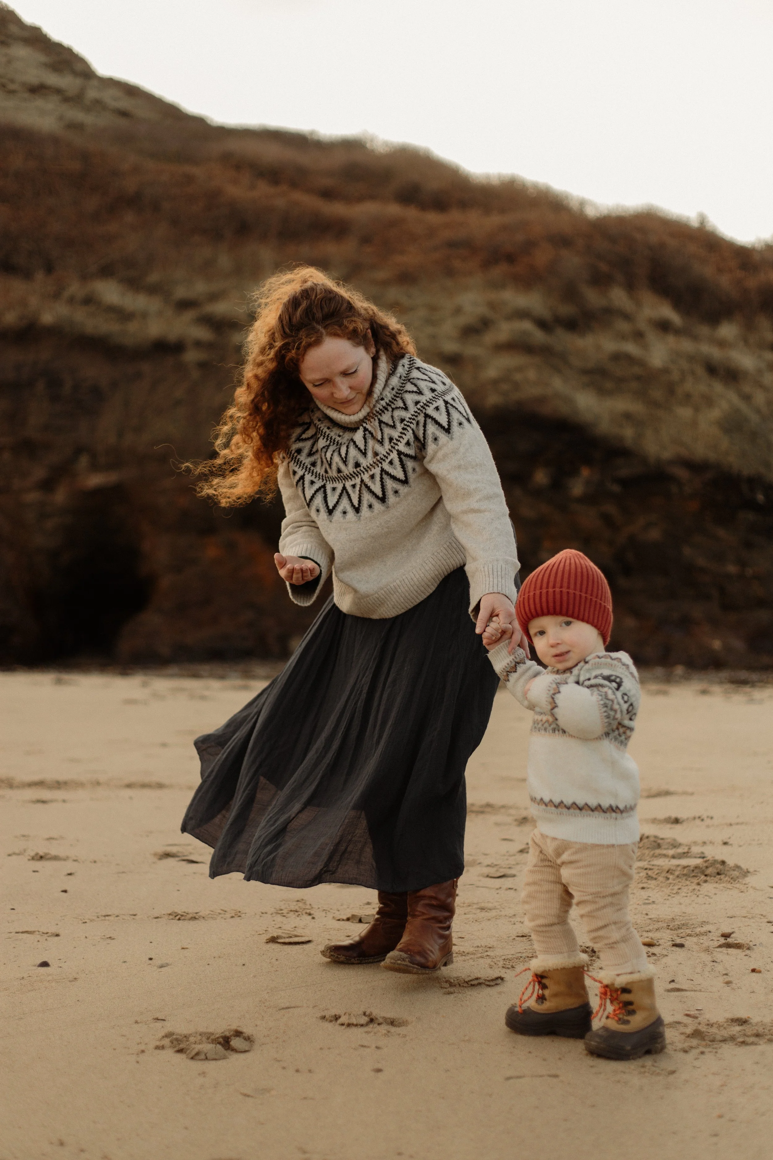 One of my favourite styled sessions to date! A gorgeous wintery beach walk with some divine textures! The wool jumpers, the movement in the skirt & hair, the pop of colour in his little hat! I Love it all! Both of them look great against the cliff backdrop whilst still dressed like themselves and for the season.